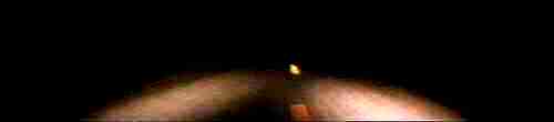 We're floating down an old two-lane highway through a desolate, desert landscape. This gliding, eerie POV continues as credits roll. when the credits end, the headlights seem to dim and soon we're moving through BLACKNESS.