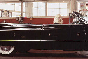 A beautiful blonde-haired girl sitting in the passenger seat of Mr. Eddy's