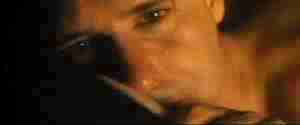 Fred's actual face - Unshaven, haggard look, eyes seem empty, glazed over. Fred is 32 years old, with dark hair.